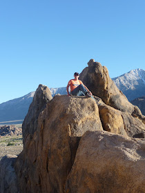 There was 6 PG this year, looking to fly from Walt's on Memorial Day weekend. Number shrink to 3 on Friday (Me, Jonas and Arnie), but it was still 50% more then last year. There was north wind at Saturday and west at Monday, so we decide to fly only Sunday. Initial plan was to camp at Horseshoes Meadows at 10000 ft altitude to get some acclimatization, but -3C° at night convinced us to camp in valley. Lone Pine camp was good place to stay and we also did some rock climbing just before sunset: